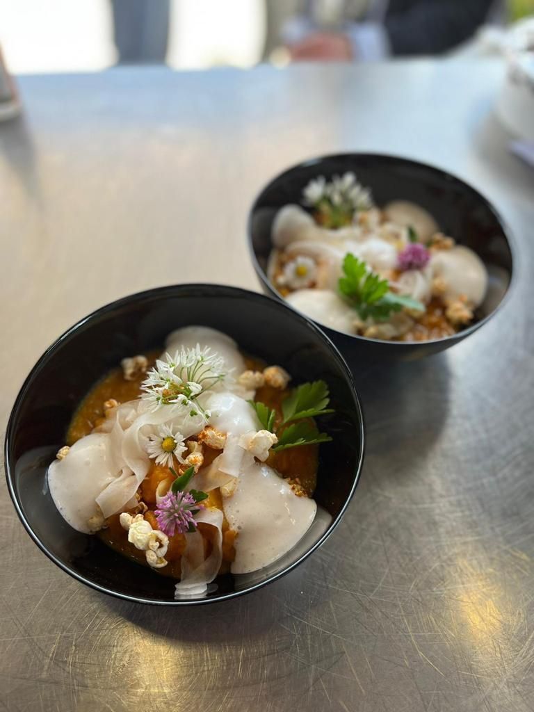 Um möglichst wenig Müll zu produzieren richten wir unsere Gerichte soweit wie möglich auf Mehrweggeschirr an .